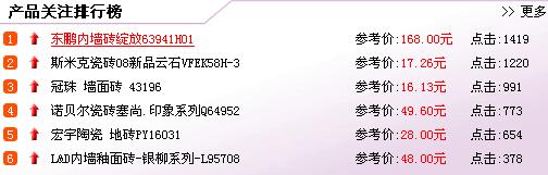 通過本周內(nèi)墻磚產(chǎn)品關注排行榜不難看出,具有文化性和藝術性的瓷磚已經(jīng)成為今春市場上的新寵。東鵬的綻放系列、冠珠的藝術墻面磚、諾貝爾的塞尚·印象系列、L&D的銀柳系列,無一不是在藝術和文化上下足功夫。