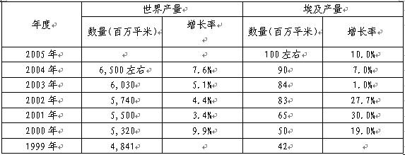 盡管埃及該行業產品的產量在2002年—2003年之間變化不大,但在1999年—2005年間的增長速度卻超出了世界的平均增長水平。
