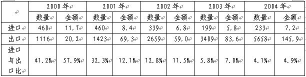 2000—2004年埃及瓷磚和衛生潔具出口量國際分布表
