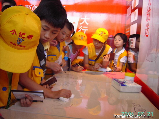 “新亮爽”大行動成為深圳小記者的關注目標自己在地上的涂畫能否輕松擦掉?日前,在深圳設計文化節上,深圳小記者協會的20多個小記者在中源朗高陶瓷展位找到答案。    小記者們在工作人員的指導下,即興用油性筆在光亮的磚面寫字或涂畫,然后用抹布輕松地把痕跡抹去。工作人員告訴小朋友,以后在家里就可以很好地幫助媽媽清潔地面了。   據了解,中源朗高陶瓷是中國陶業航