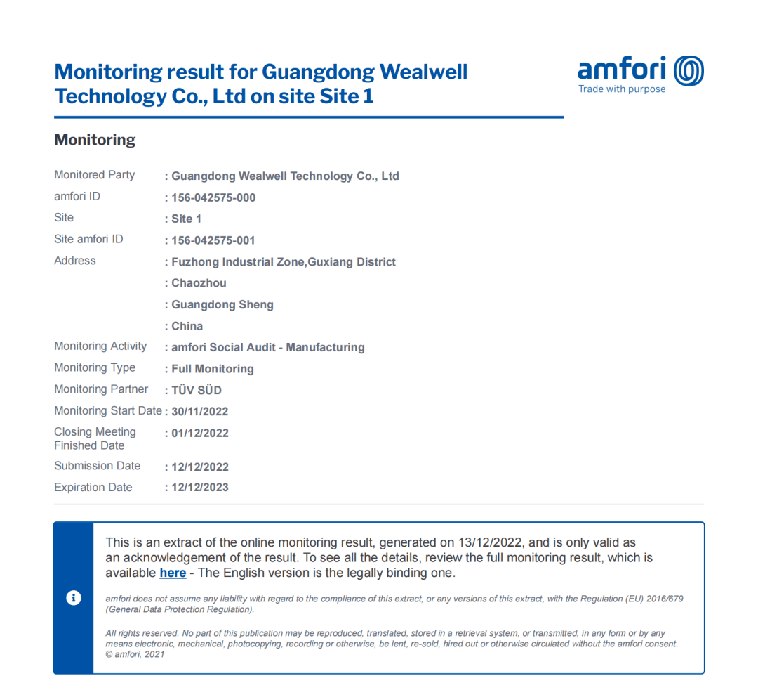 為開拓國(guó)際市場(chǎng),進(jìn)一步擴(kuò)大貿(mào)易合作發(fā)展空間,廣東櫻井科技有限公司引入國(guó)際標(biāo)準(zhǔn)化管理體系,接受BSCI企業(yè)認(rèn)證的審查,經(jīng)過專業(yè)的文件資料審核、企業(yè)現(xiàn)場(chǎng)審核、員工訪談等一系列環(huán)節(jié),于近日順利通過BSCI認(rèn)證的審核。