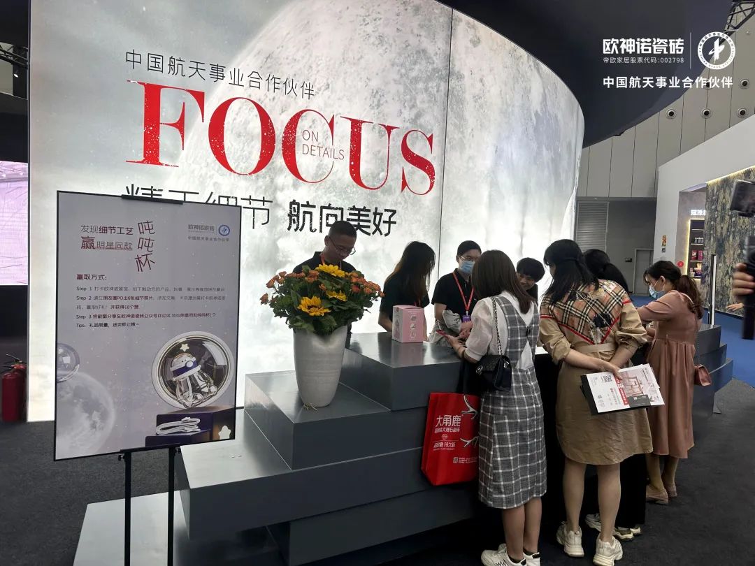 洞察時代前沿的藝術美學,不斷深化對細節工藝的探索。歐神諾「細節派 實力+」展館,以“精于細節工藝”和航天精神為核心,全方位展示歐神諾代表性產品、航天級別細節工藝、A+空間服務體系、應用系統和強大的工程實力,完美呈現細節工藝之美,在一眾設計中火速出圈。