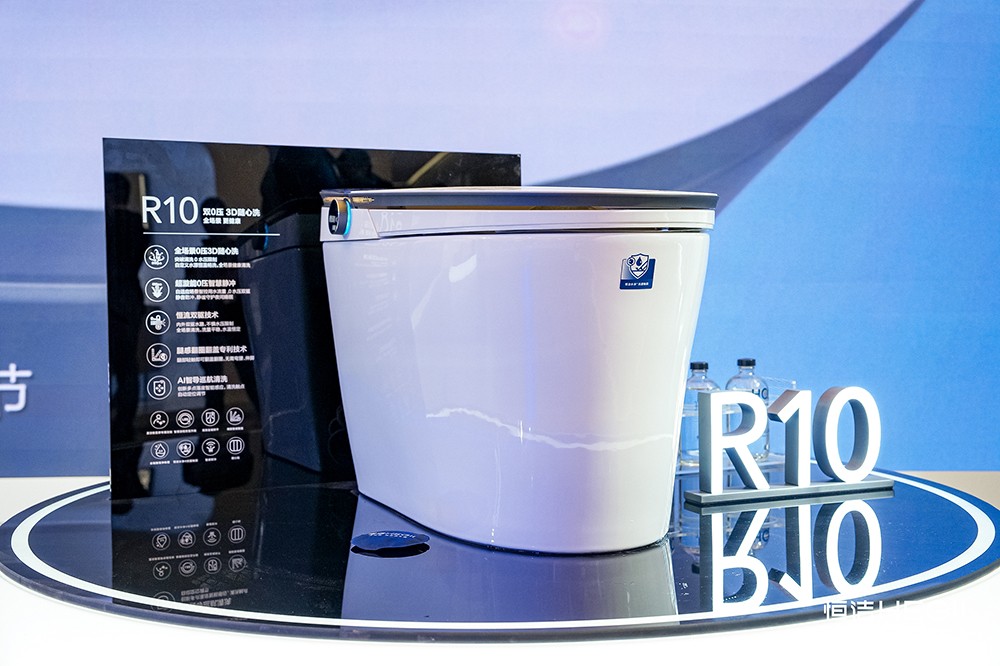 繼智能R9在2023KBC開創“3D隨心洗”時代之后,恒潔R系列再次推出智能標桿——恒潔智能R10一體機。星空外觀設計的智能R10融合了全場景0壓3D舒適洗、超漩能0壓智慧靜沖以及恒流雙驅技術,再次展現了恒潔在智能技術上的技術創新能力。其獨特的腿感翻蓋設計、星空數顯界面以及智慧旋鈕,都為用戶提供了一種全新的便捷操作和舒適體驗,重新定義了智能衛浴的體驗標準。