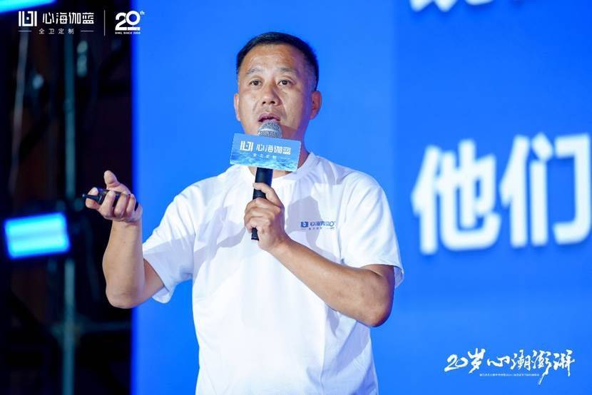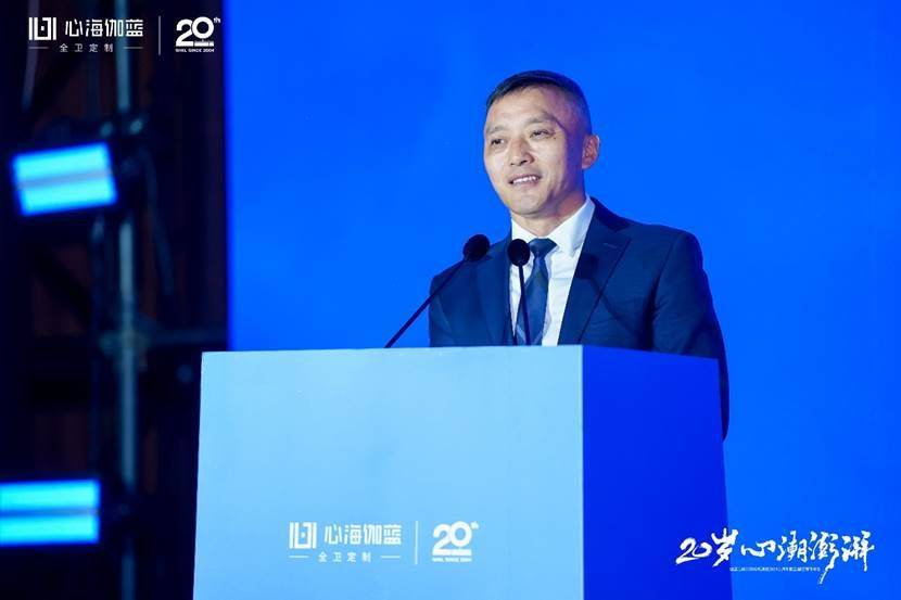 晚宴開始,張愛民董事長在閃耀燈光中登場,熱情洋溢地發表了20周年報告。張董真情流露地回顧了公司20年的發展歷程,從幾個人的從浴室柜單一品類的獨角獸到全衛定制戰略領航,從多品牌運作到贏伽電商、凱庭淋浴房,雅頌衛浴等七大分公司/中心集團發展,從專賣區到全國百城千家門店、至商業版圖覆蓋海外,心海伽藍始終敢為創新、銳意進取,從率先扛起數智化生產大旗開始,心海伽藍始終堅持開放分享的態度,與行業共同成長。