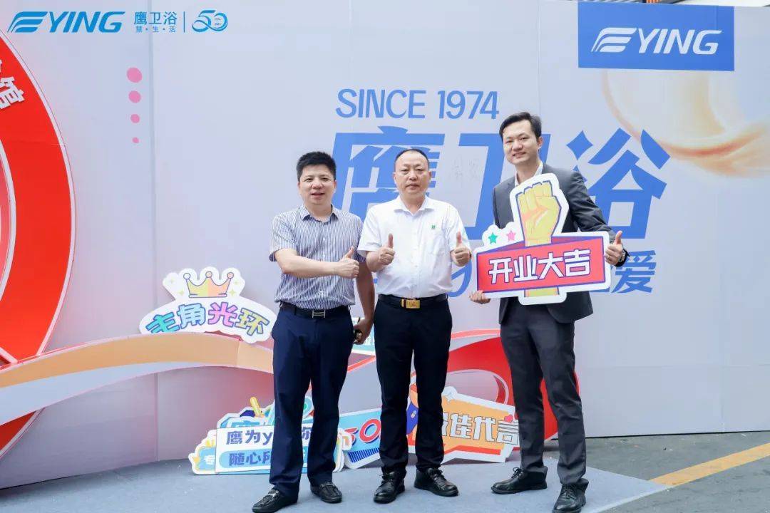 鷹衛(wèi)浴總經(jīng)理裴杰、鷹衛(wèi)浴市場部總監(jiān)龍治宇、鷹衛(wèi)浴國內(nèi)銷售總監(jiān)朱峰等多位公司領(lǐng)導(dǎo)蒞臨開業(yè)盛典,為新店的華麗啟航送上祝福。
