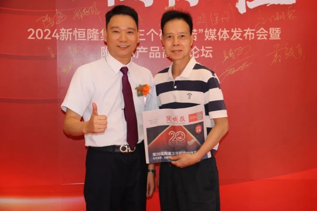 廣東新恒隆集團總經理羅浩彬、廣東新恒隆集團營銷總經理蔡旻高、廣東新恒隆集團品牌營銷總經理羅順機、廣東新恒隆集團品牌營銷總經理 羅浩鑒、廣東新恒隆集團市場總監曾小娟等集團高層領導、特邀經銷商代表和佛山市佛山標準和卓越績效管理促進會秘書長朱悅夫、佛山市質量計量監督檢測中心(國家陶瓷及水暖衛浴產質量檢驗檢測中心)部長吳清良、智造聯盟董事長金亞范、家居視界總經理張英權等特邀重磅嘉賓出席了本次發布會,共同見證了這一具有里程碑意義的時刻。本次盛會還得到了智造聯盟、陶城報、中國陶瓷網、華夏陶瓷網、陶瓷信息、陶瓷資訊、佛山日報、設計好物、華人設計師、中國陶瓷家居網、陶瓷深度、陶瓷世界、華南家居網等一眾主流媒體大力支持和持續爭相報道,活動熱度不減。