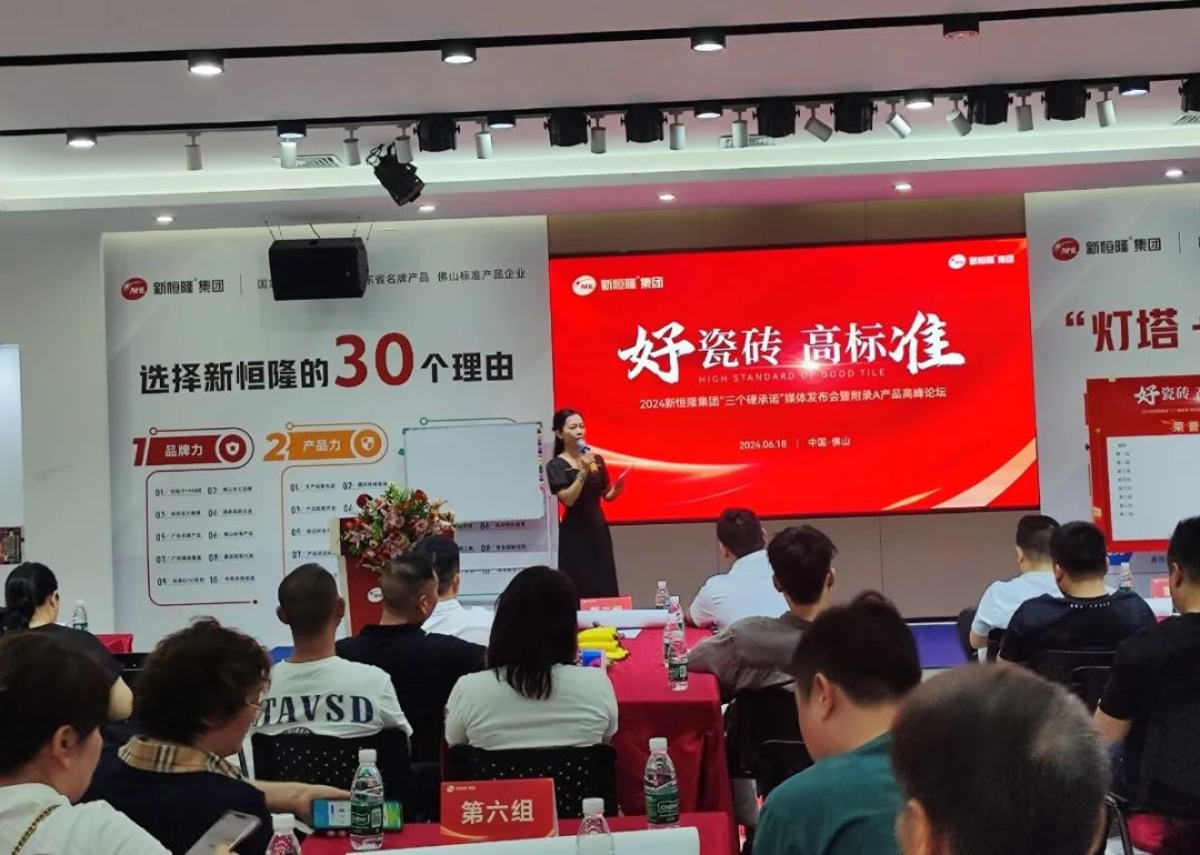 沉淀,皆因篤行而獲;發展,勵新便有新機。6月18日,“好瓷磚 高標準”新恒隆集團“三個硬承諾”媒體發布會暨附錄A產品高峰論壇圓滿成功,集團高層領導、特邀經銷商代表、各大主流媒體齊聚一堂,共同見證了“三個硬承諾”震撼發布,共探企業發展新路徑。
