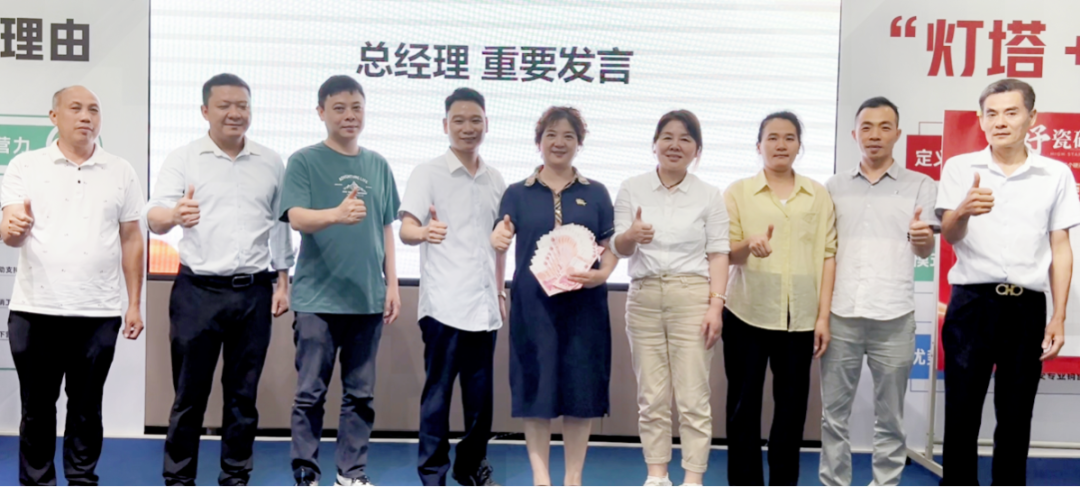 接下來,“三個硬承諾”傳播大使閃亮登場,他們將會是企業發展的有力推動者。每一位傳播大使接過沉甸甸的牌匾,表示著他們將肩負起企業使命,積極響應總部號召,定能在未來工作中爭當表率,全力以赴,將硬承諾的宣貫落實到位,讓每一個消費者放心消費到物超所值的佛山瓷磚,共同打造高標準的佛山陶瓷企業形象,提升企業的美譽度與知名度。
