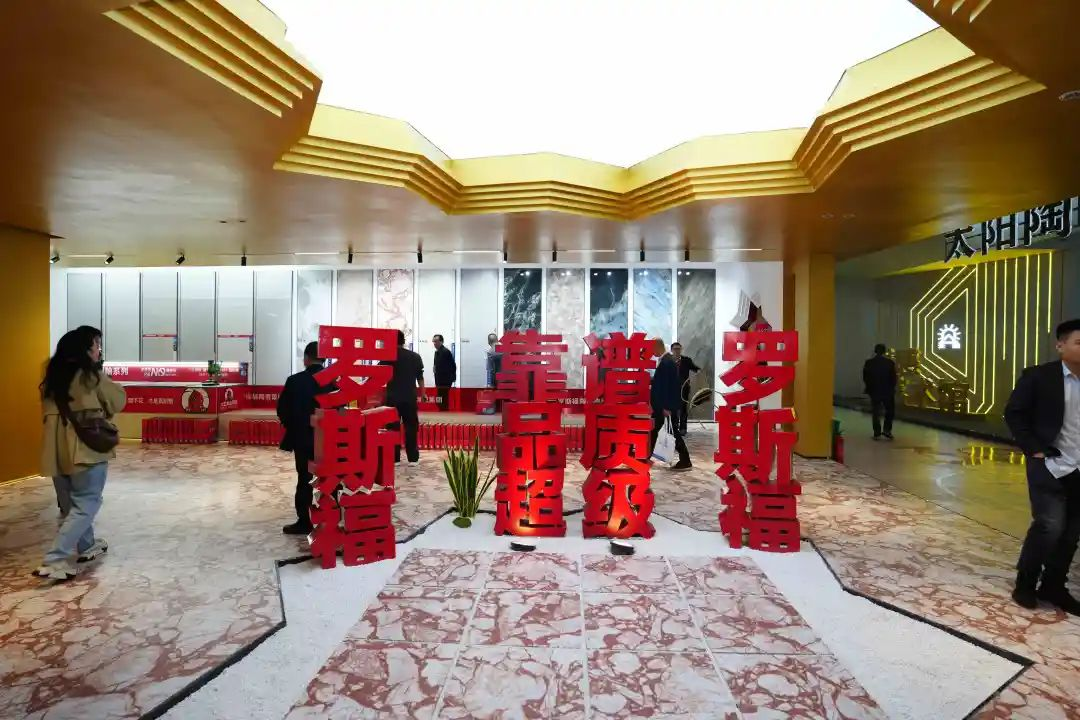 本次會展太陽陶瓷新推的是星耀大理石、1:1高透大理石、超級平?大理石三大系列新品,工藝方面分別應用了新型星光釉及升級布料工藝,新型高透釉及AI技術,可使磚面透感度提升20%以上,而3.0超平釉面新品更是可以達到消除R角、水波紋、輥棒印的多種效果。此外,重點推出的行業首創全家福產品配套模式,產品涵蓋納米娜·源素臻巖、650×1300鉑金大板原石大板、通體大理石、源素臻巖、無限連紋精工中板全系列。