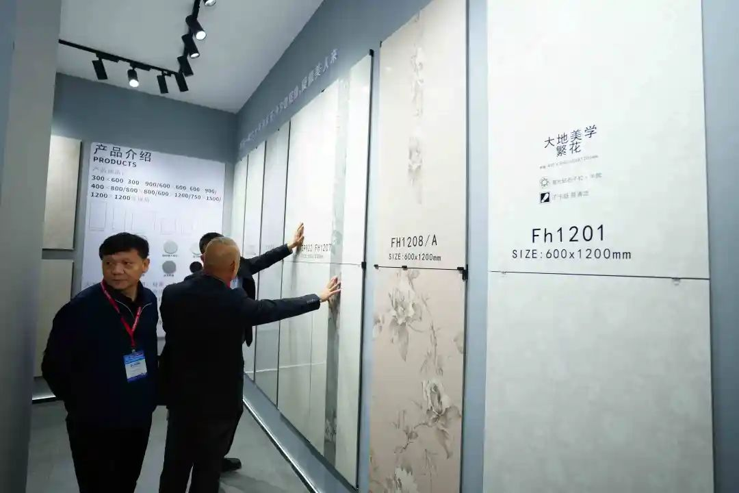 湖北杭瑞企業作為產區領軍企業、行業頭部企業,全面展示了復刻釉、玉質釉、數碼釉、1:1大理石、奢石匯、藝墅家系列、高光瓷片。其中,1:1復刻天然石材的紋理無限接近石材天然質感,玉質釉采用自主研發的高端納米材質使觸感升級、更柔更潤,數碼釉還原自然真石的凹凸質感。而300×300、300×600mm瓷片有亮光、啞光、純色、網紅對位格子磚,可承接高中低檔指定品牌工程定制產品。