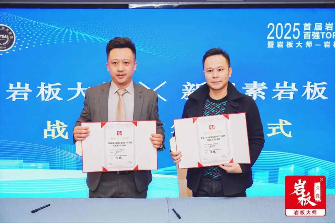 同時,巖板大師與E鋪貼巖板交付聯盟、安徽杰愛、壁貝品牌、樓邦品牌、固諾品牌等公司代表簽署了戰略合作協議,進一步加強了巖板行業在各領域的協同合作。