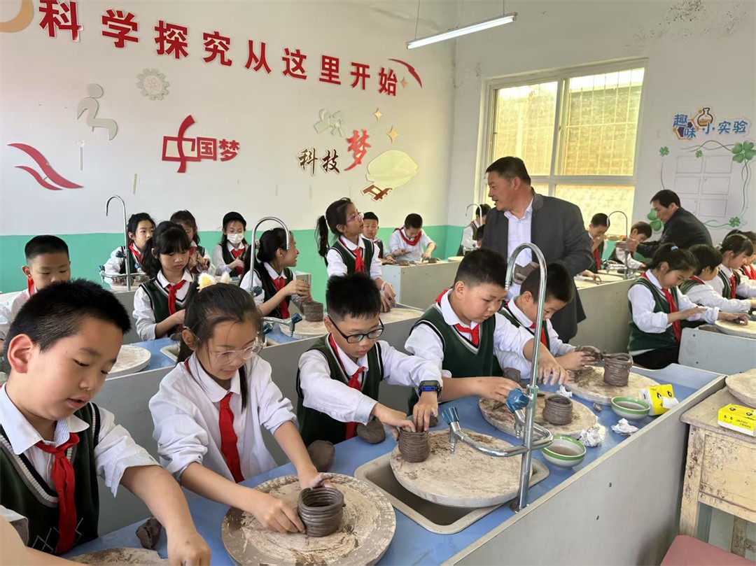 4月19日,石家莊市盛世長安小學教師計春麗、王新會,帶領學生前往井陘礦區古村落藝術村,開展研學活動。走進藝術村,古宅錯落,色彩繽紛,溪水環繞,同學們參觀了藝術家院落,訪問了多位國家級藝術家駐地工作室、欣賞了各種藝術作品,參觀了正豐左岸美術館展岀的藝術精品展,具有濃厚的紅色文化底蘊,藝術村保留了古老村落的韻未,同時融入了現代藝術的靈魂,形成了獨特的藝術氛圍。在馮家溝陶藝館,在李耀會老師的熱情講解下,同學們了解非物質文化遺產馮家溝陶瓷技藝的制作工藝、歷史背景以及作品之美,同學們還親自動手操作體驗勞動創造美的過程,捏一捏、揉一揉、搓一搓、粘一粘,在老師的指導下,同學們將手中的泥土制成各式各樣的造型,沉浸式體驗了古老傳統手工陶藝的成型工藝。陶藝,源于陶土,融于水火,塑于人工,一件陶藝品,由泥土,經火淬煉至最終成于器,需經采石制泥、成型、配釉,啄器燒制等工序,期間流程繁瑣,細節頗多,更有諸多偶因素,因此器之所成極其不易,從陶土到成品、需要經過幾十道工序,每一工序都凝聚著匠人的精神與智慧。通過實踐,不僅讓同學們感受到了“陶瓷藝術”非物質文化遺產的精妙,更讓同學們懂得了堅持與專注的意義,同時也增強了同學們的自信心和自我價值感。