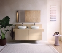 該系列的設計核心與靈魂色調——啞光陶土色,以傳統工藝為靈感,賦予陶瓷產品質樸自然而溫暖優雅的質感,使其更具有手工般的真實觸感。Urquiola表示:“我們的目標是利用陶土這種材料,創造出一種讓衛浴用品更有層次的畫布。這是有意偏離純白或純黑極簡美學的嘗試。”這也構成了浴室家具的配色基礎,大地色系的陶土色調以及以自然為靈感的色彩搭配,其中融入了白色、土棕色和啞光炭黑色的微妙變化,預示著浴室色彩運用的全新開放性。