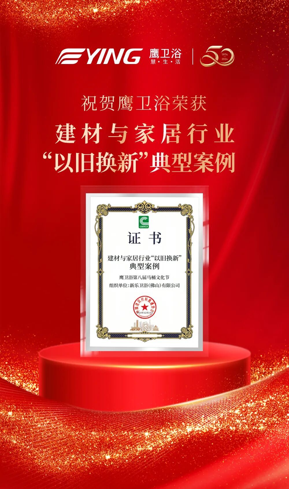本次大會,中國建筑材料流通協(xié)會在全國建材與家居行業(yè)內(nèi)組織開展了2024年建材與家居行業(yè)“以舊換新”評選活動,經(jīng)大會一致評定,鷹衛(wèi)浴榮獲“以舊換新”行動先鋒、“以舊換新”典型案例兩大榮譽,彰顯鷹衛(wèi)浴在“以舊換新”國策項目中的出色表現(xiàn)和市場口碑。
