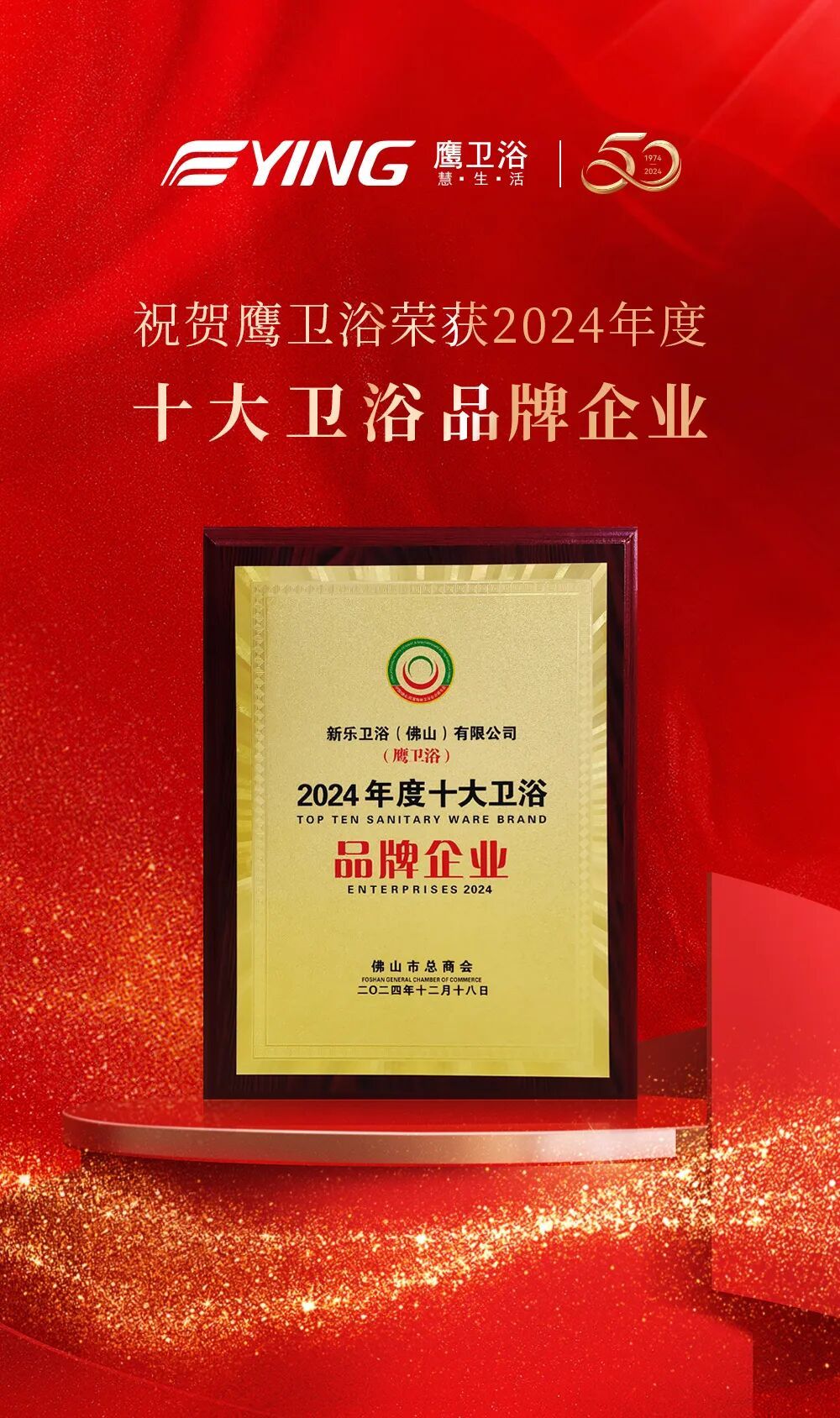 12月18日,由佛山市總商會主辦的“2024第二十三屆中國(佛山)民營陶瓷衛(wèi)浴企業(yè)家年會”盛大舉辦。本次峰會對2024年度表現(xiàn)優(yōu)異的建陶衛(wèi)浴企業(yè)進行了表彰。鷹衛(wèi)浴憑借出色的品牌實力,榮獲了2024年度“十大衛(wèi)浴品牌企業(yè)”榮譽,鷹衛(wèi)浴已連續(xù)多年獲得此項榮譽。